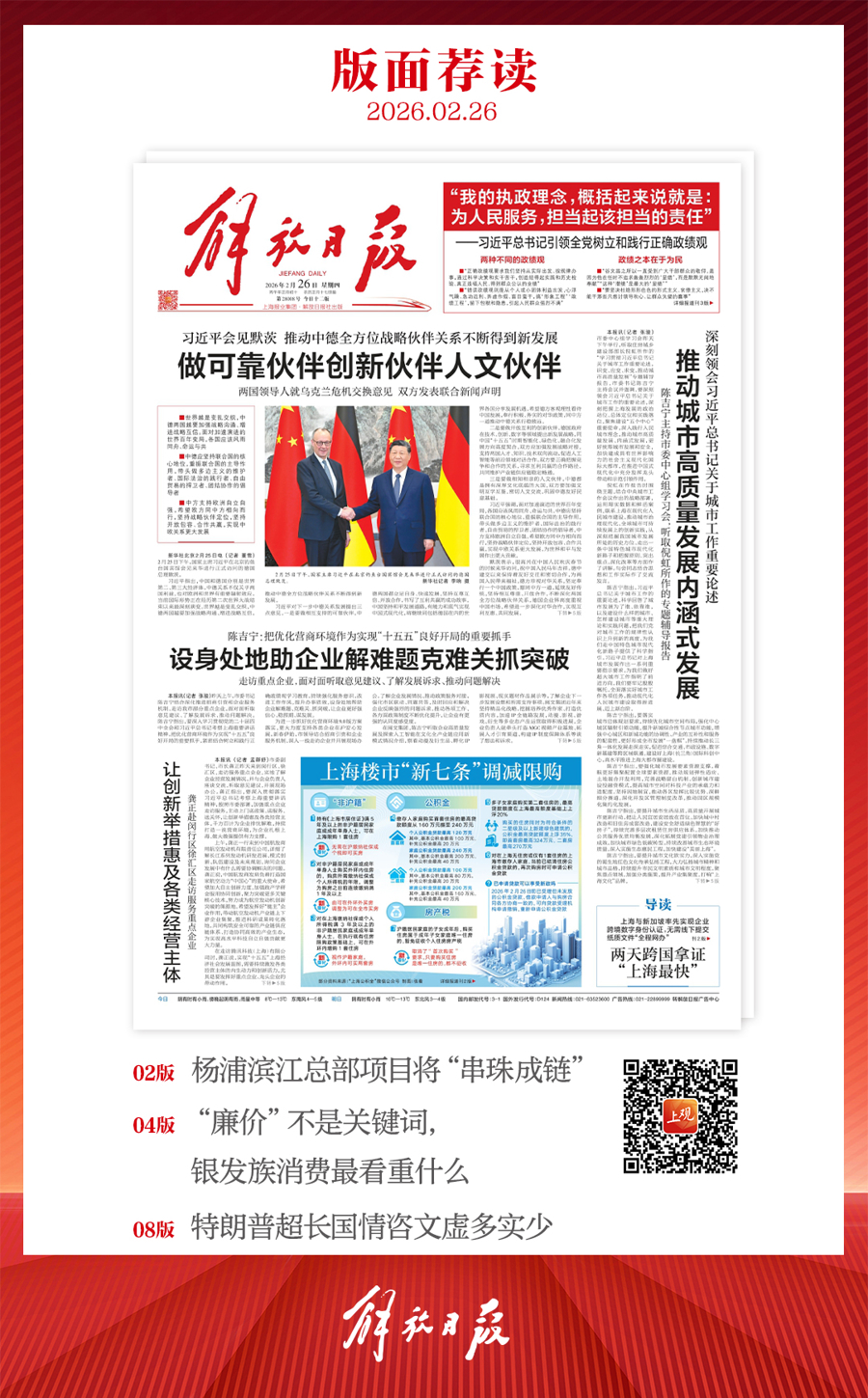 早上好!上不雅新闻『早读』来啦!2025年2月26日 星期四 农历正月初十上海阴随机有小雨,傍晚起阴有雨,雨量中等,8—13℃
